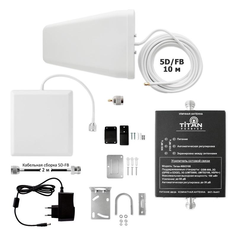 Теперь давайте возьмём для примера недорогой репитер Комплект Titan-900/2100 он подходит по частоте, а усиление составляет 60ДБ. Теперь проведём небольшие вычисления: к мощность сигнала -70 прибавляем усиление донорной антенны и усилителя, отнимаем потери на кабеле и прибавляем мощность сервисной антенны. Если вы используете несколько комнатных антенн не забудьте в расчёте учесть потери на делители мощности. И что получаем: -70 (сигнал) + 8 (донорная) + 60 (усилитель) + 9 (сервисная) — 3 (кабель)= +4. Как видите в плюс мы вышли. А теперь, чтобы определить мощность воспользуемся таблицей отношения силы сигнала к Ваттам: